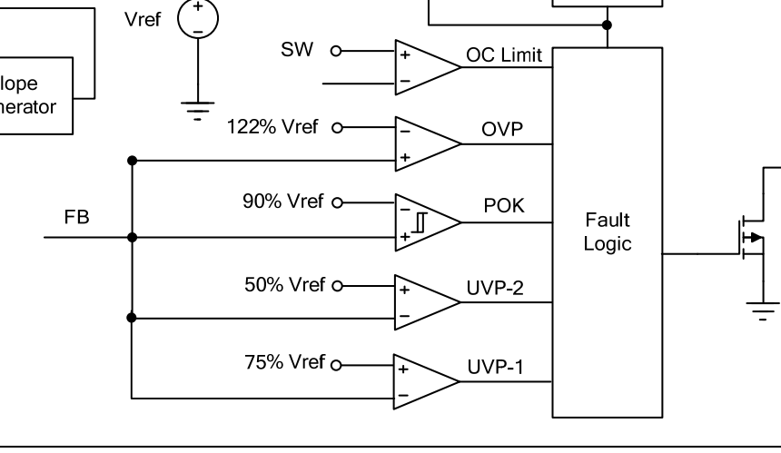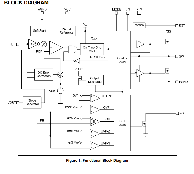FB:电压反馈引脚,通过两个电阻分压,使得输出Vout在预期值时,Vfb=Vref